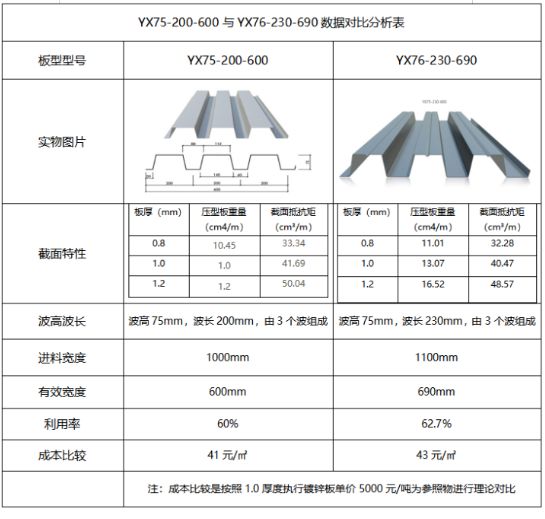 三、600型樓承板和690型樓承板的板型對(duì)比